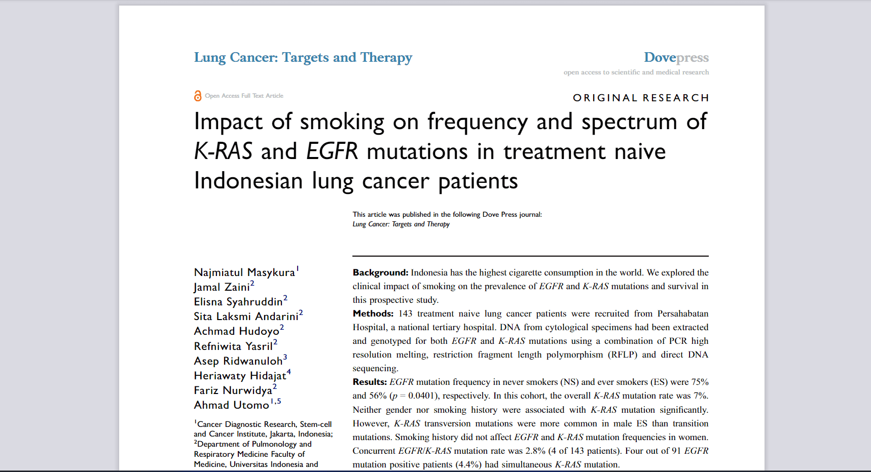 Impact of smoking on frequency and spectrum of K-RAS and EGFR mutations in treatment naive Indonesian lung cancer patients